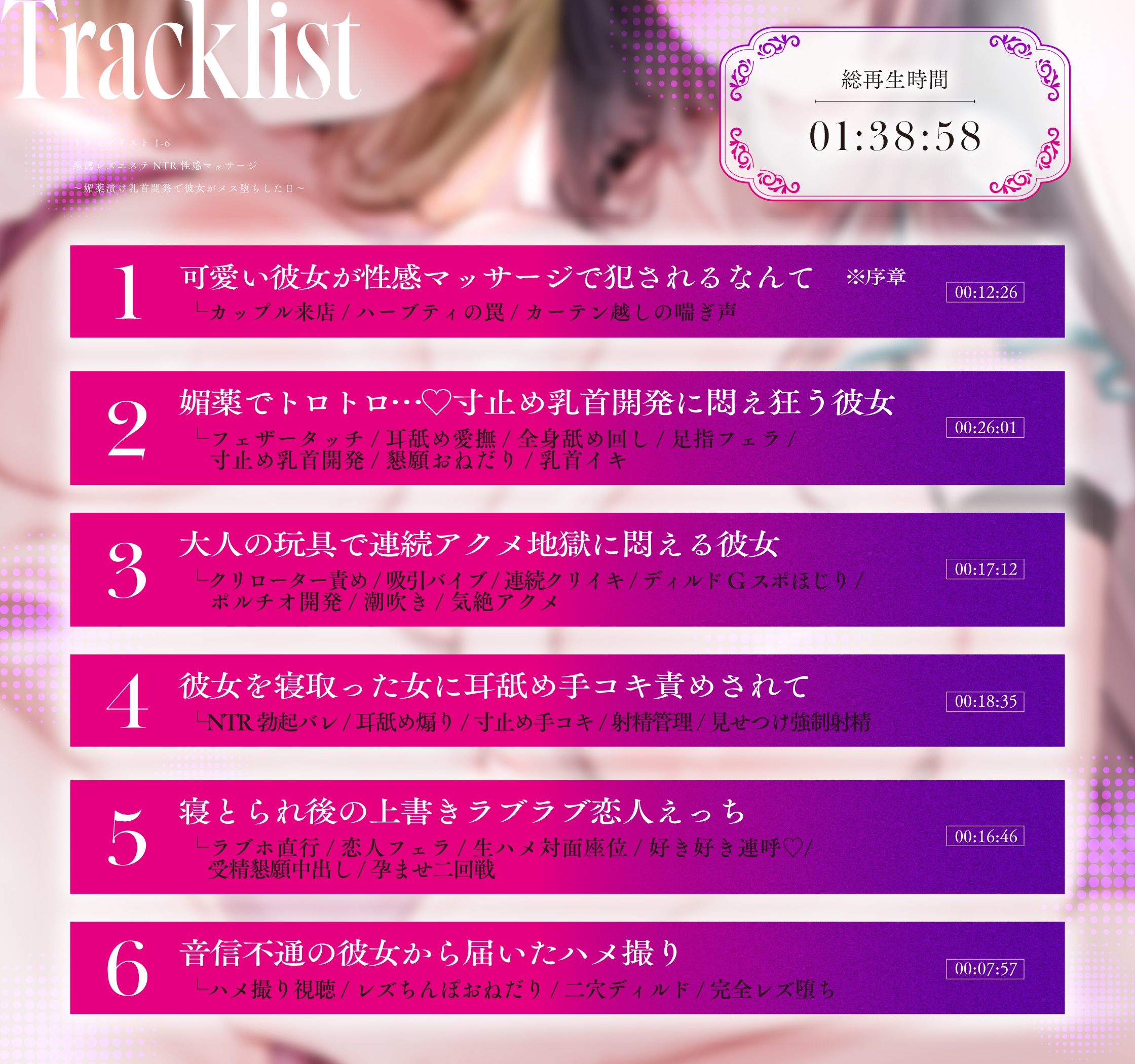 └ 羽毛般的手法 / 舔耳爱抚 / 舔遍全身 / 脚趾吸吮 / 寸止乳头开发 / 哭泣恳求 / 乳头高潮