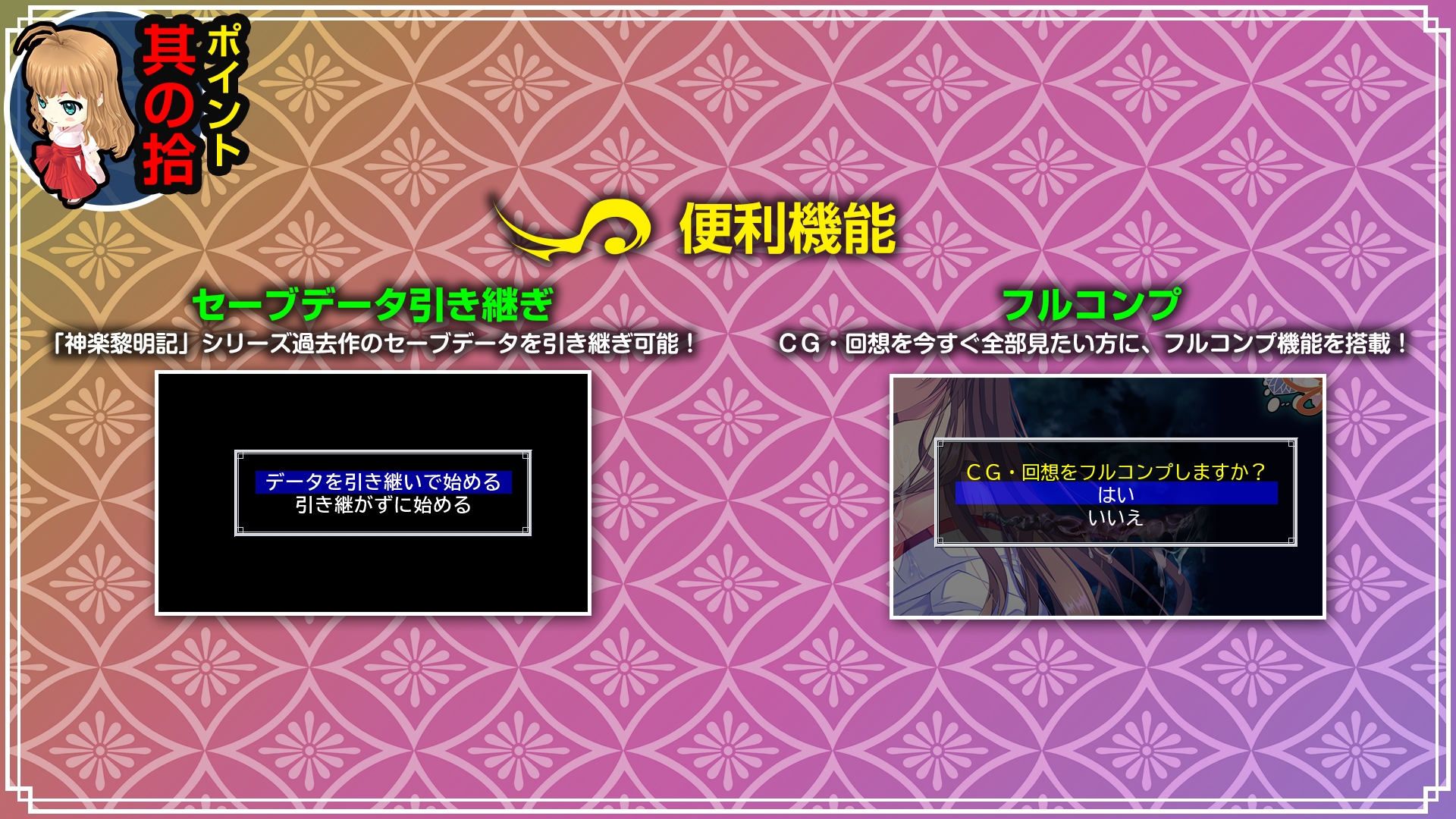 神楽黎明記シリーズをプレイされた方から要望の多かった、バッドエンディングを複数追加しました。